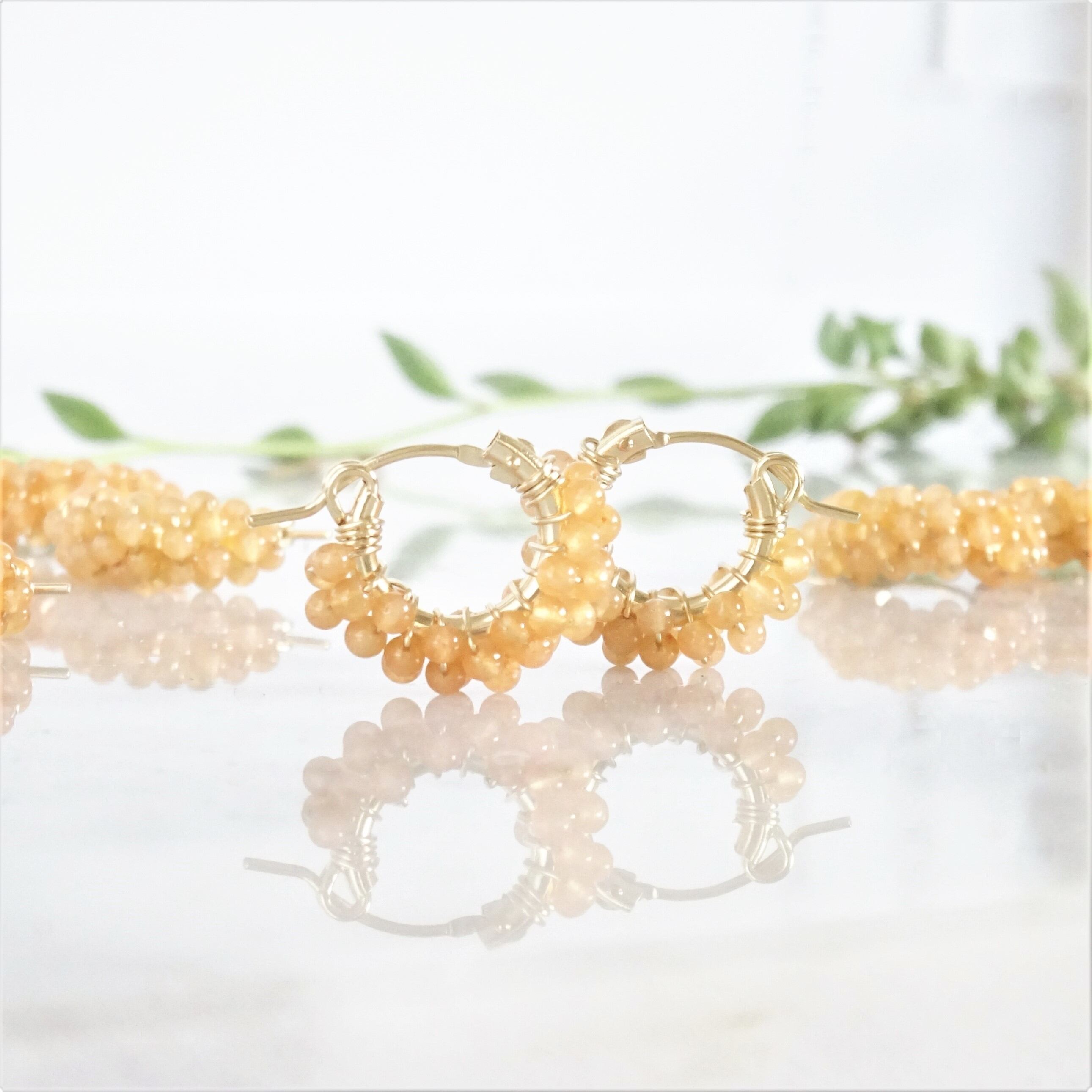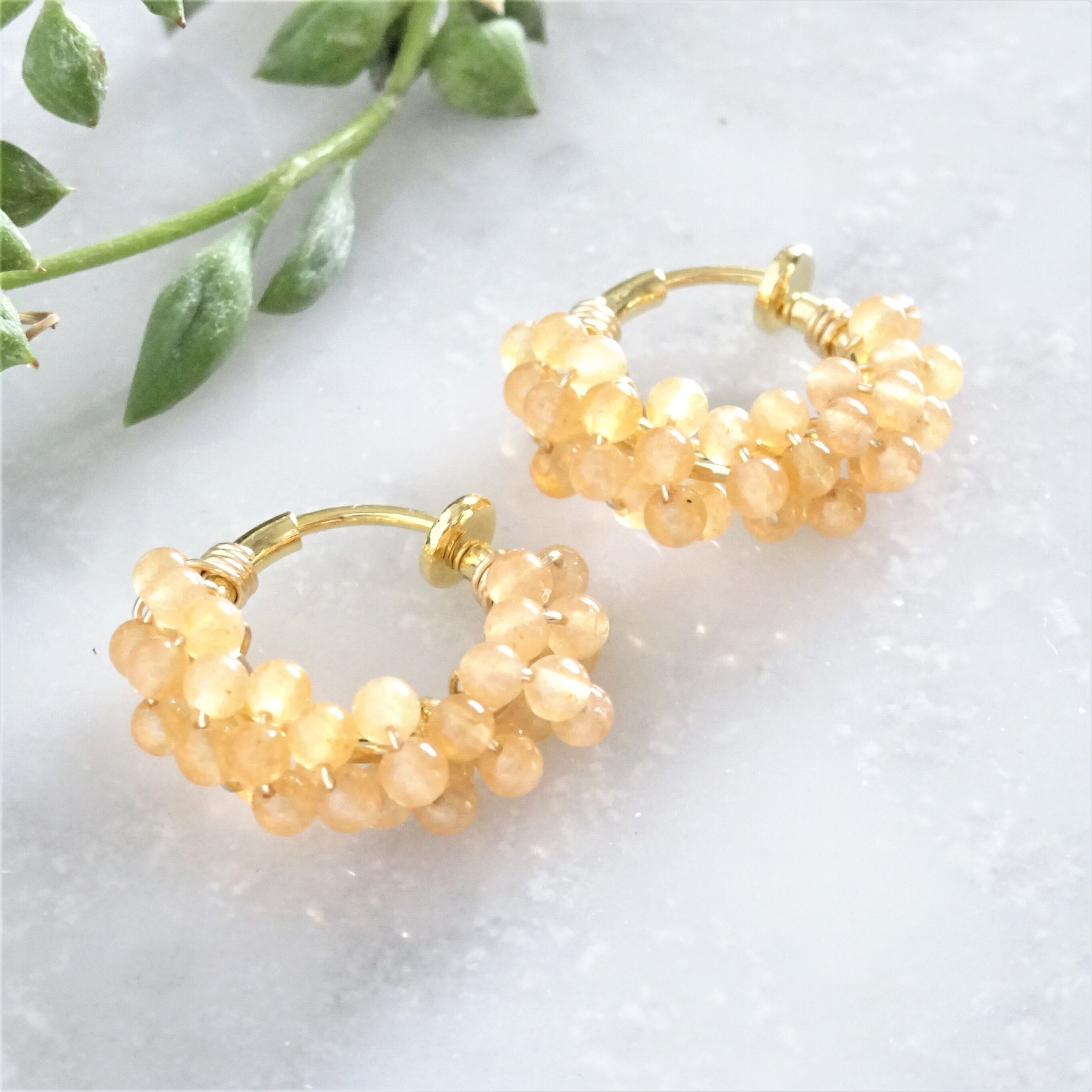小粒でつるんとした石のテクスチャーが可愛らしい小ぶりのフープです