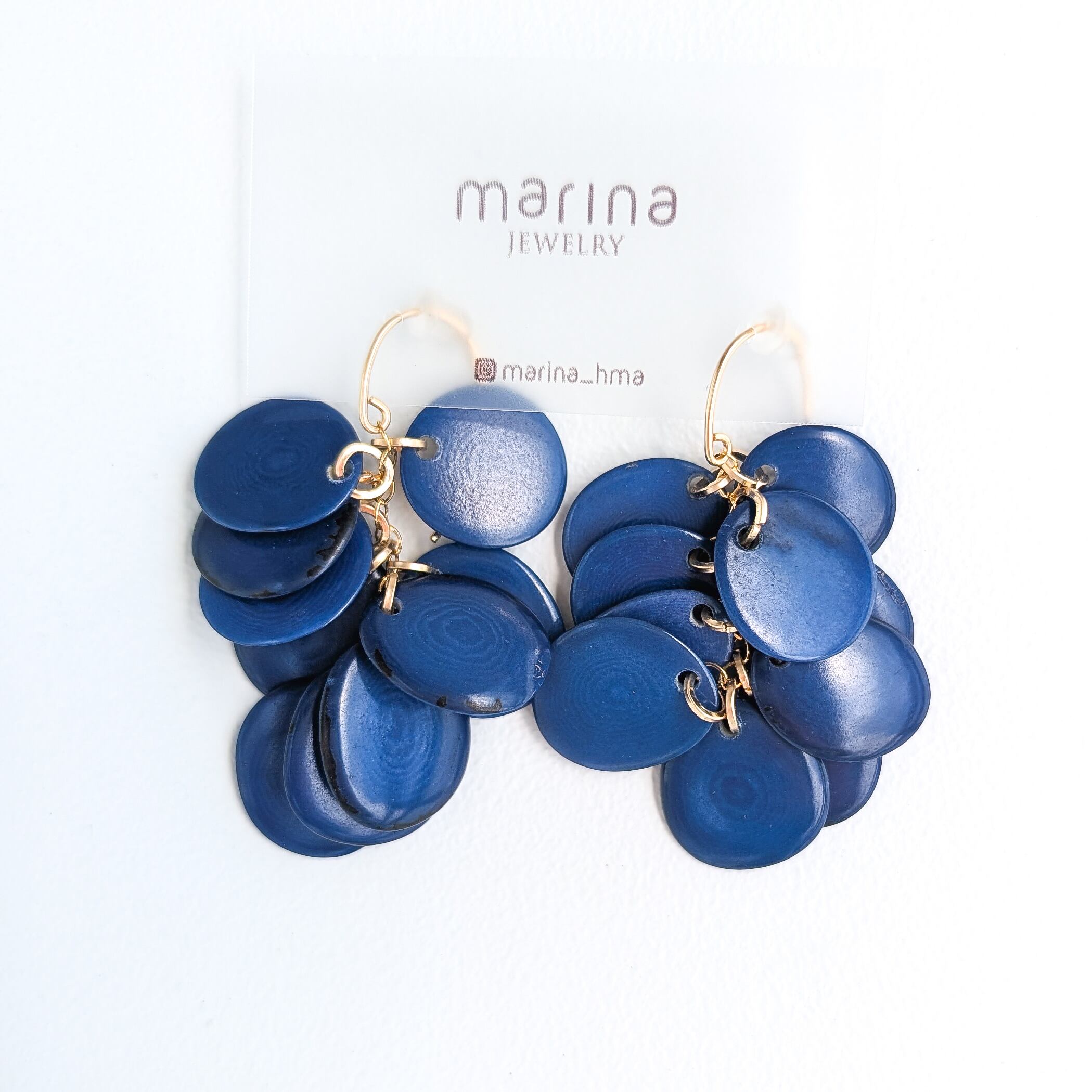 14kgf Blue Tagua Nuts layers pierced earrings / clip on [L]