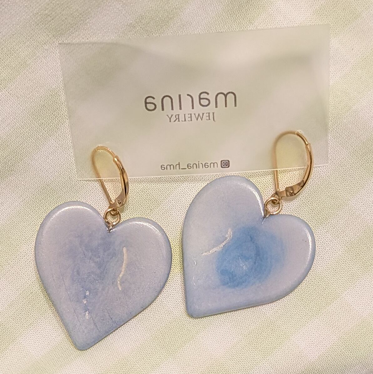 ▷お届けは画像1枚目の水色のイヤリングです。着用画像は同シリーズ他の商品ですが、サイズ感の参考になさってください。