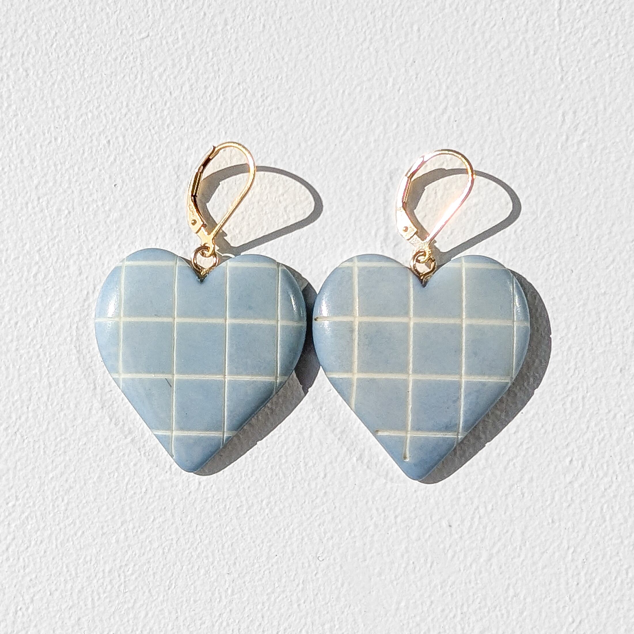 LIMITED / BAG+14kgf Light Blue Checkered Heart Tagua Nuts earrings