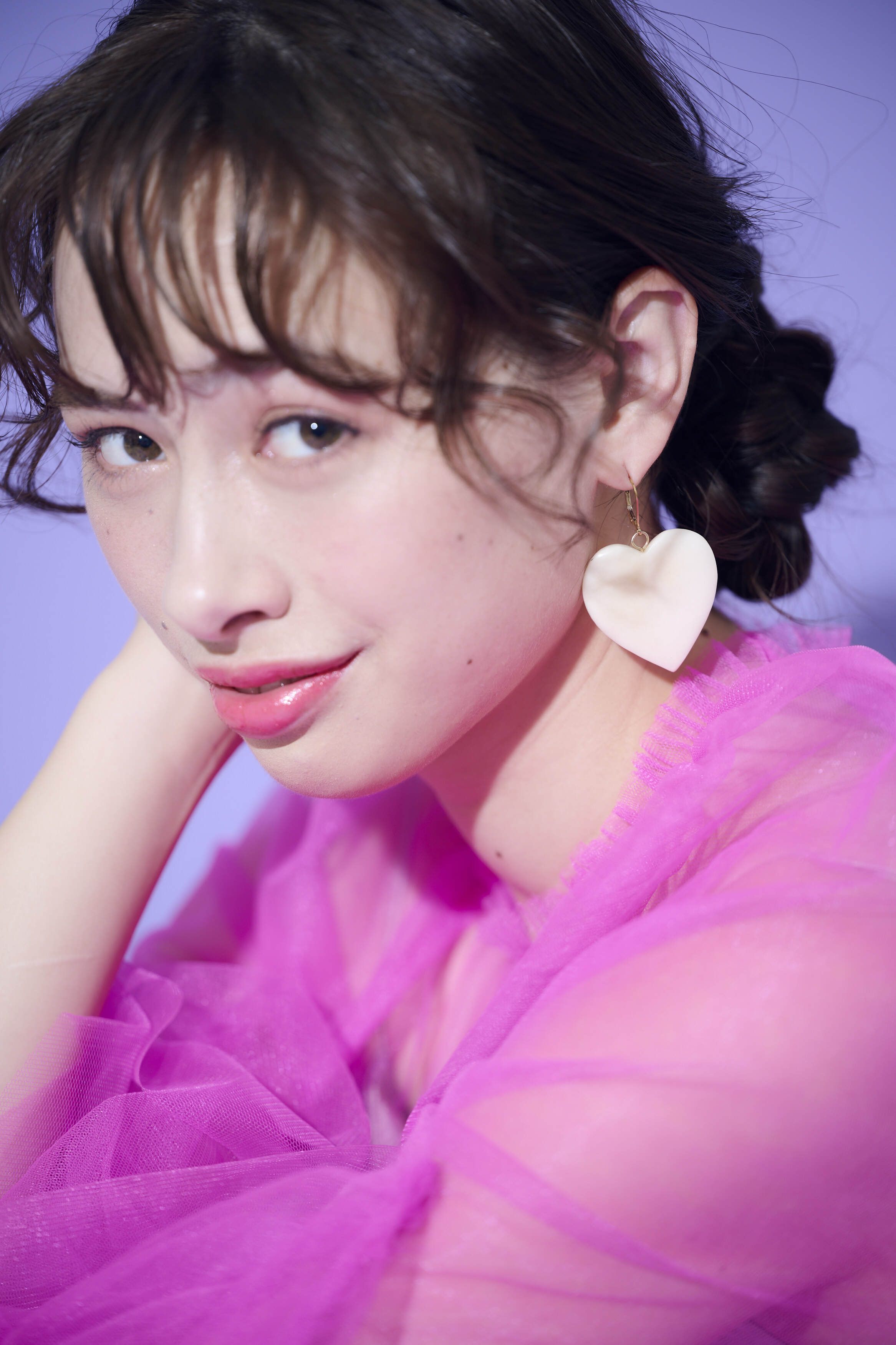 ▷お届けは画像1枚目の水色のイヤリングです。着用画像は同シリーズ他の商品ですが、サイズ感の参考になさってください。