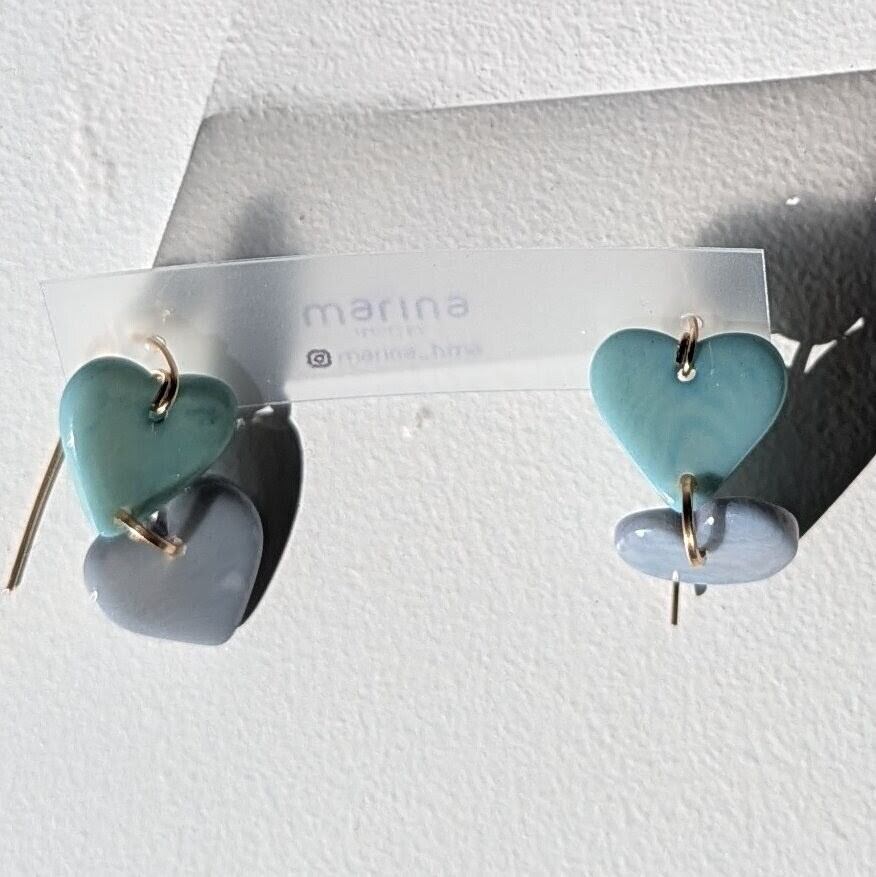 LIMITED12/ 14kgf 2Hearts Tagua Nuts pierced earrings / clip on