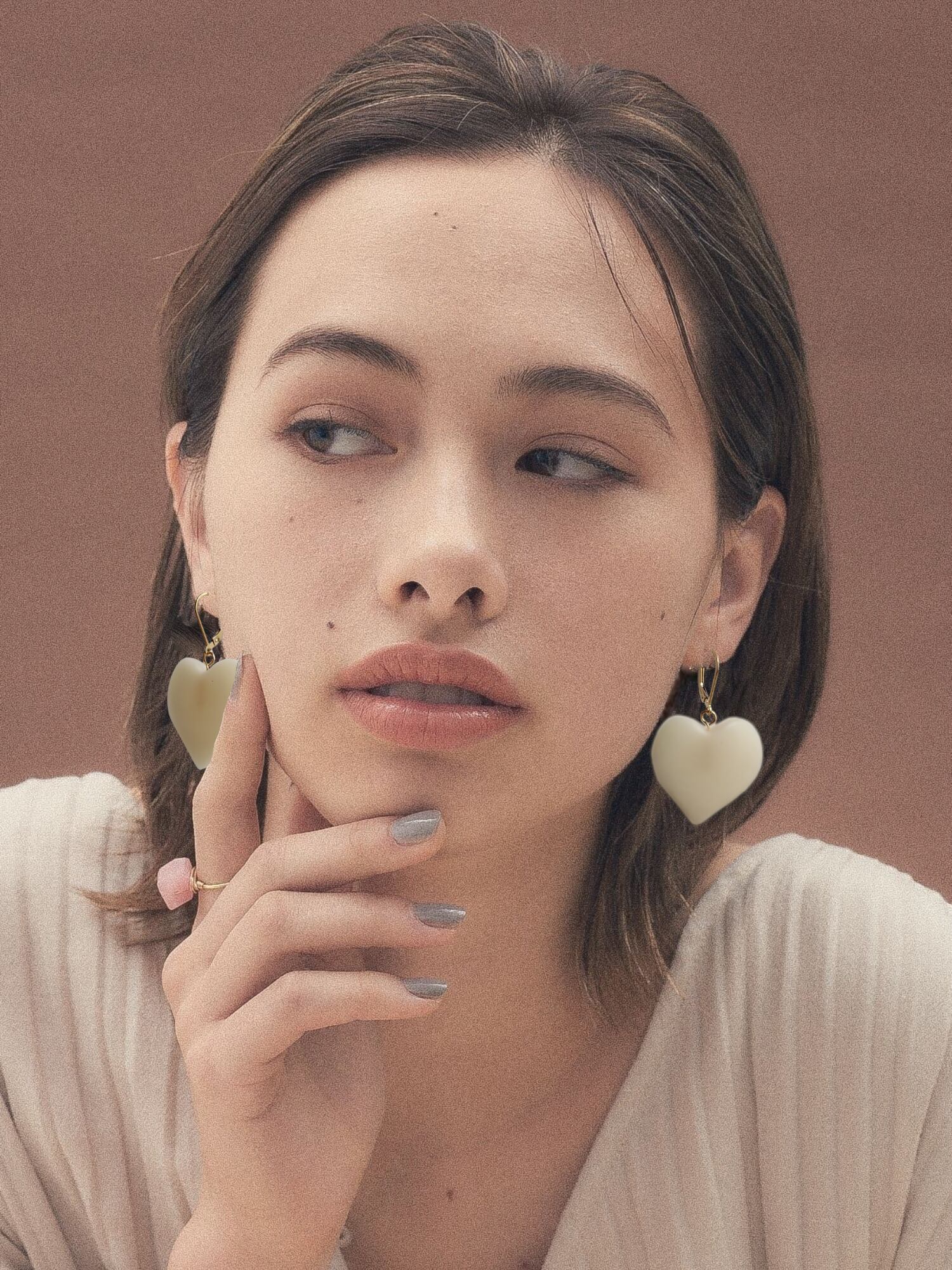 ▷お届けは画像1枚目のピンクのイヤリングです。着用画像は同シリーズ他の商品ですが、サイズ感の参考になさってください。