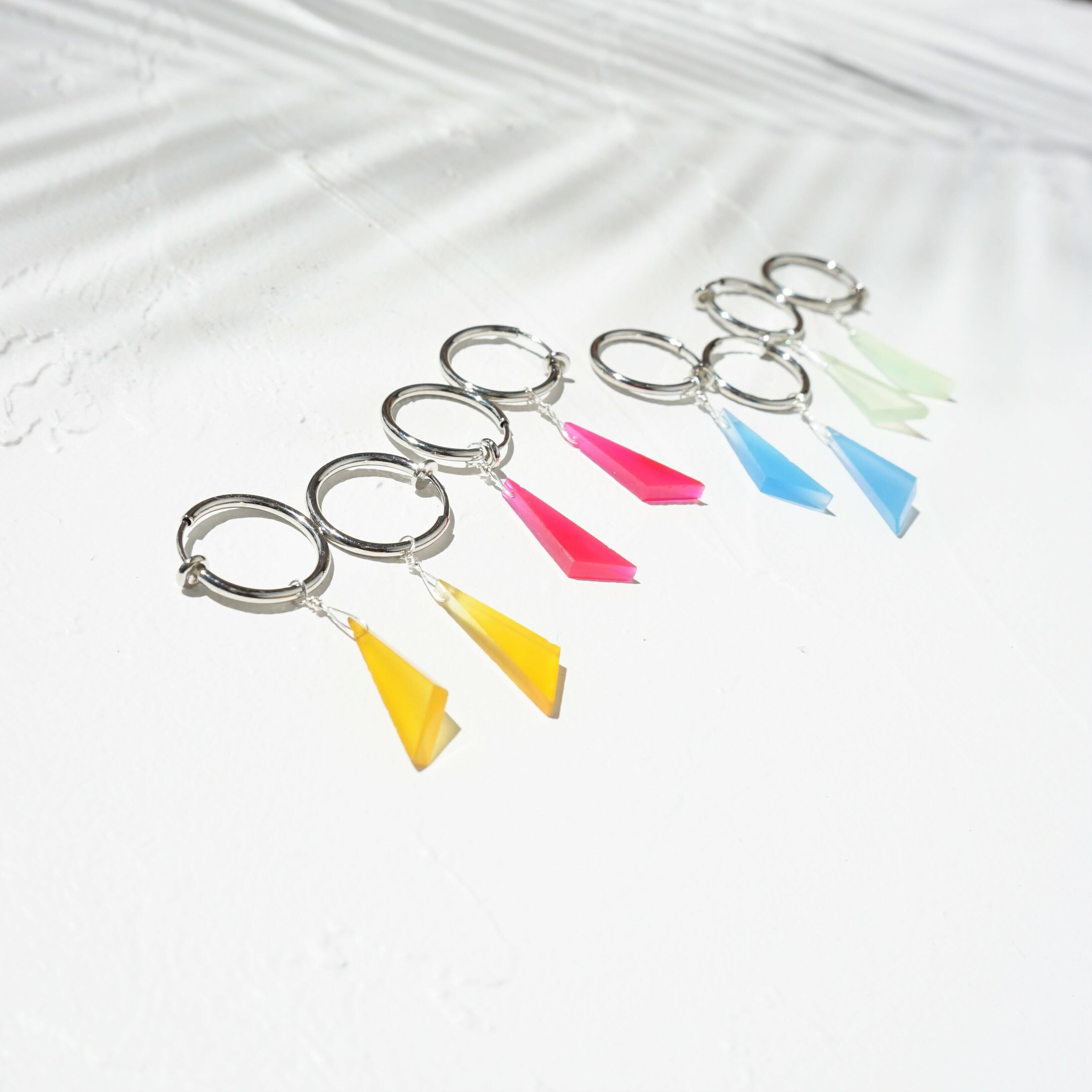 ライトグリーンカルセドニーの珍しい三角形のピアス/イヤリング