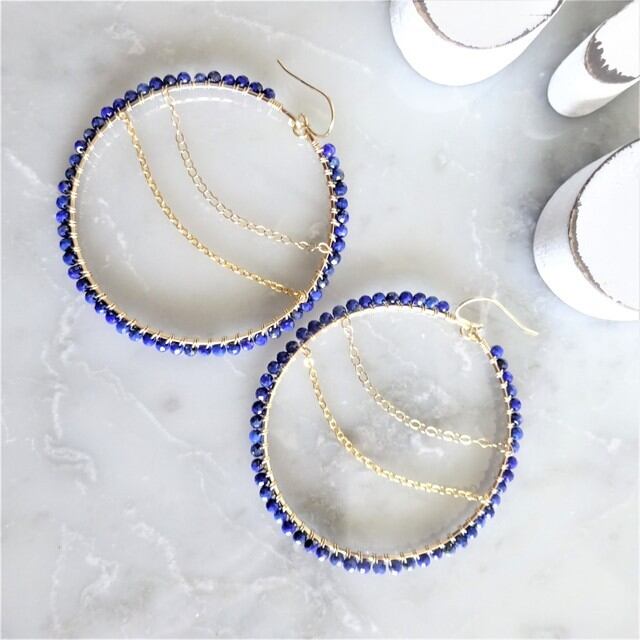 送料無料 14kgf lapis lazuli*wraped hoop pierce/earring
