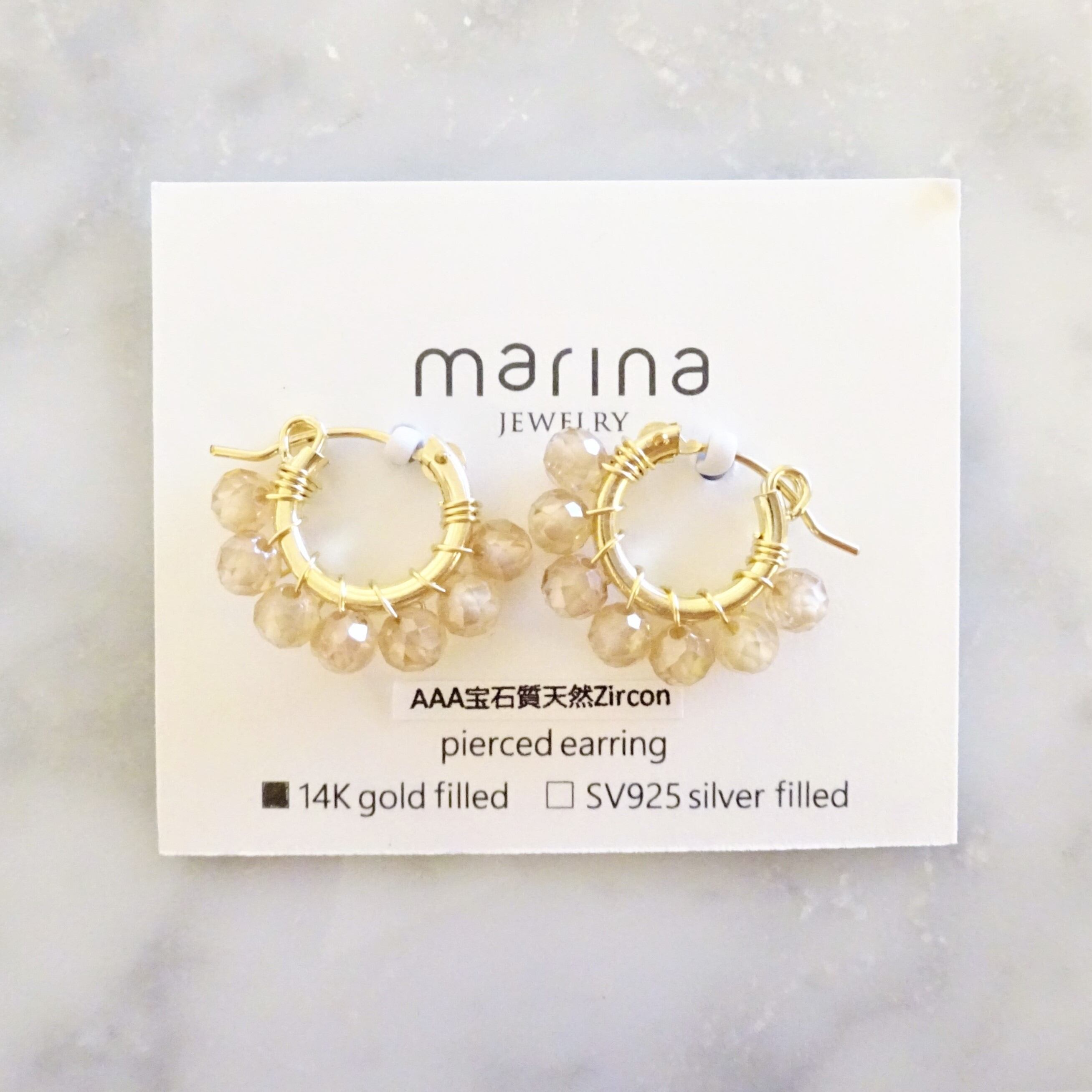 送料無料14kgf 天然Zircon wrapped pierced earring / earring