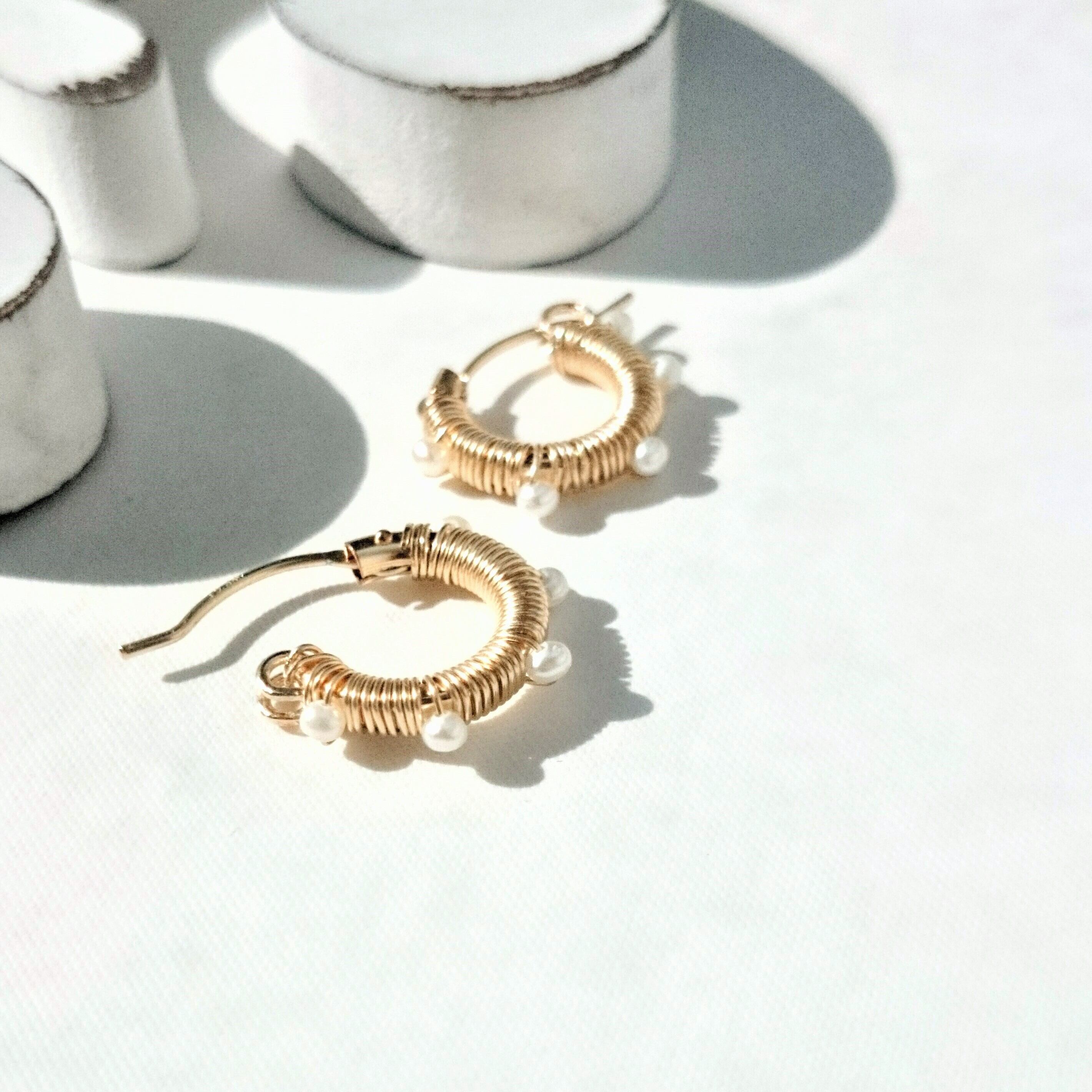 送料無料 14kgf*baby pearl wrapped hoop pierced earring/earringパール