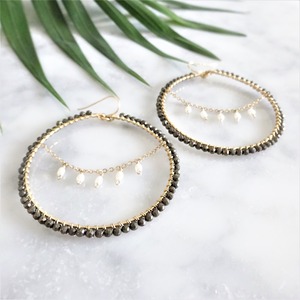 送料無料 14kgf*Pyrite x Pearl chandelier wrapped pierce / earring