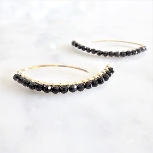 14kgf 宝石質Black Spinel wrapped marquis pierced earring