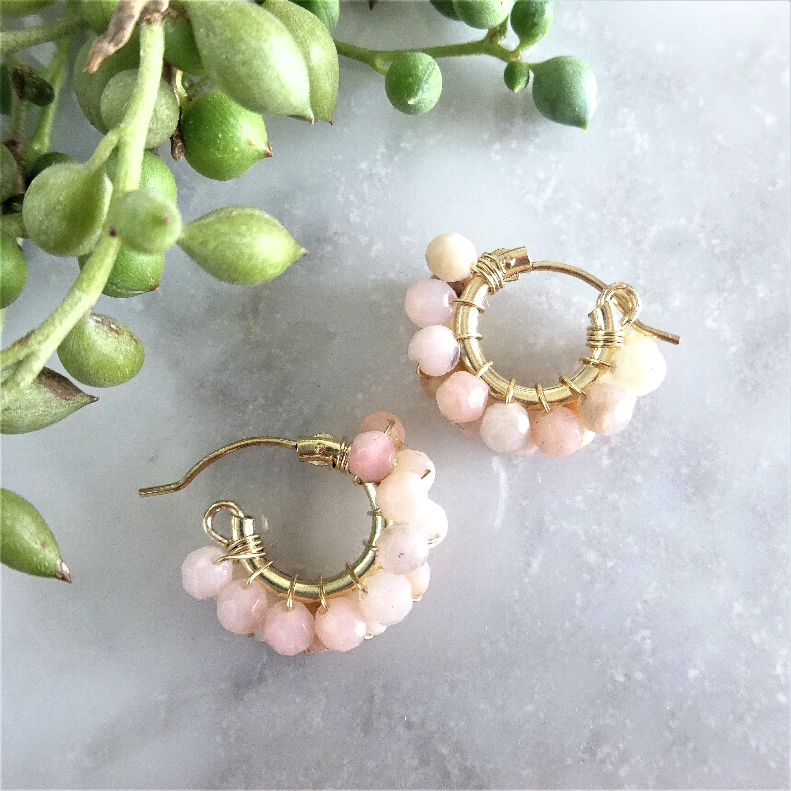 送料無料 14kgf Pink Opal wrapped pierced earrings / clip on
