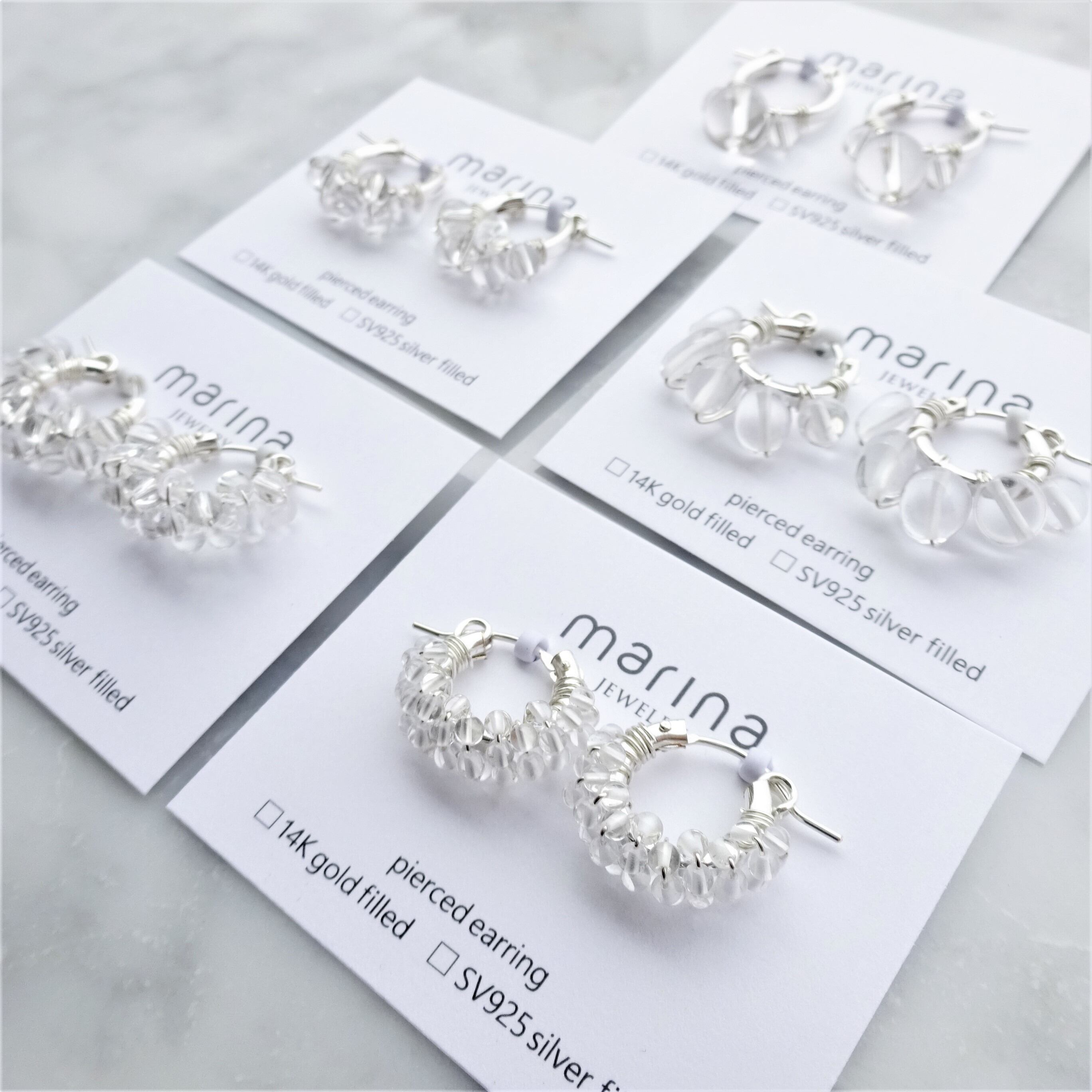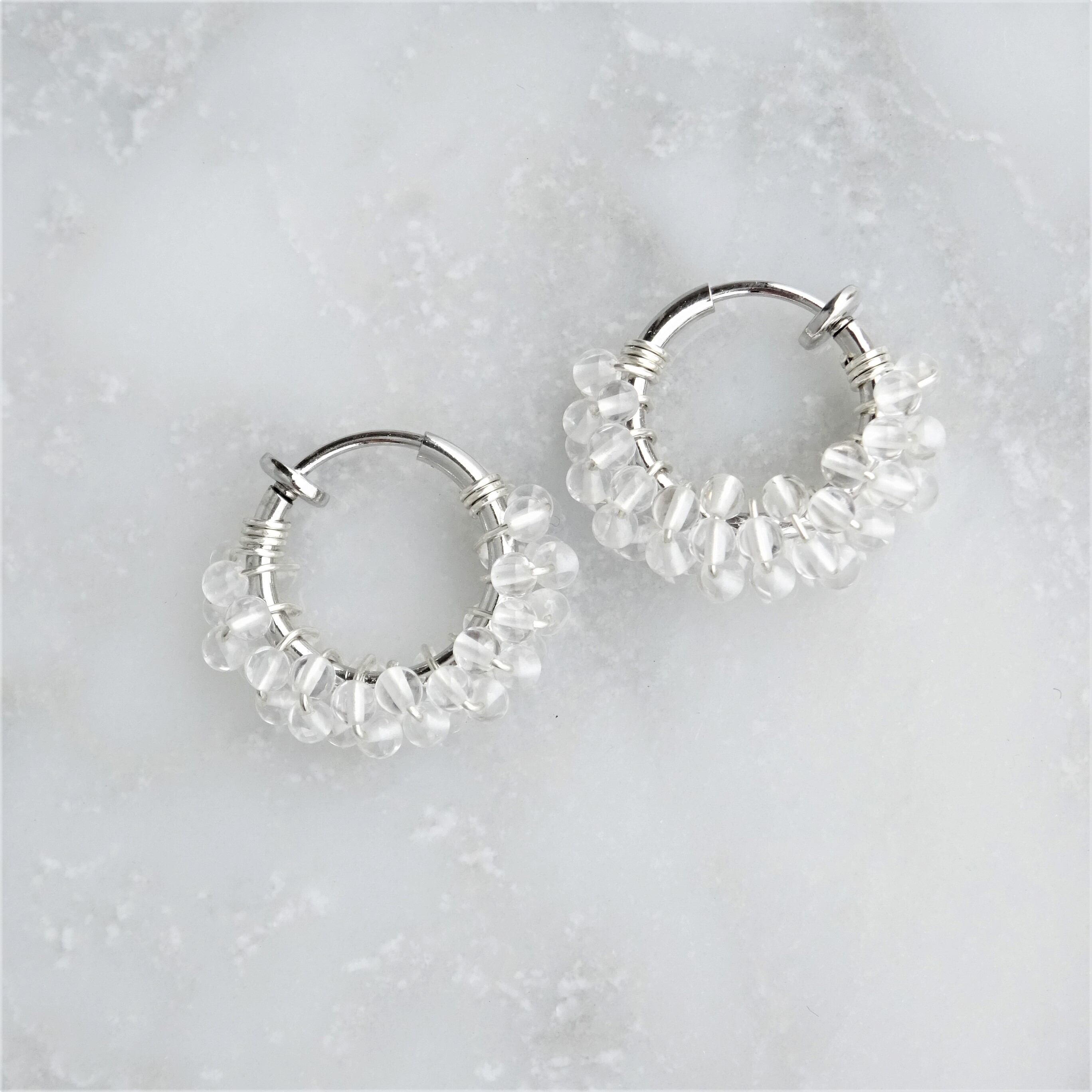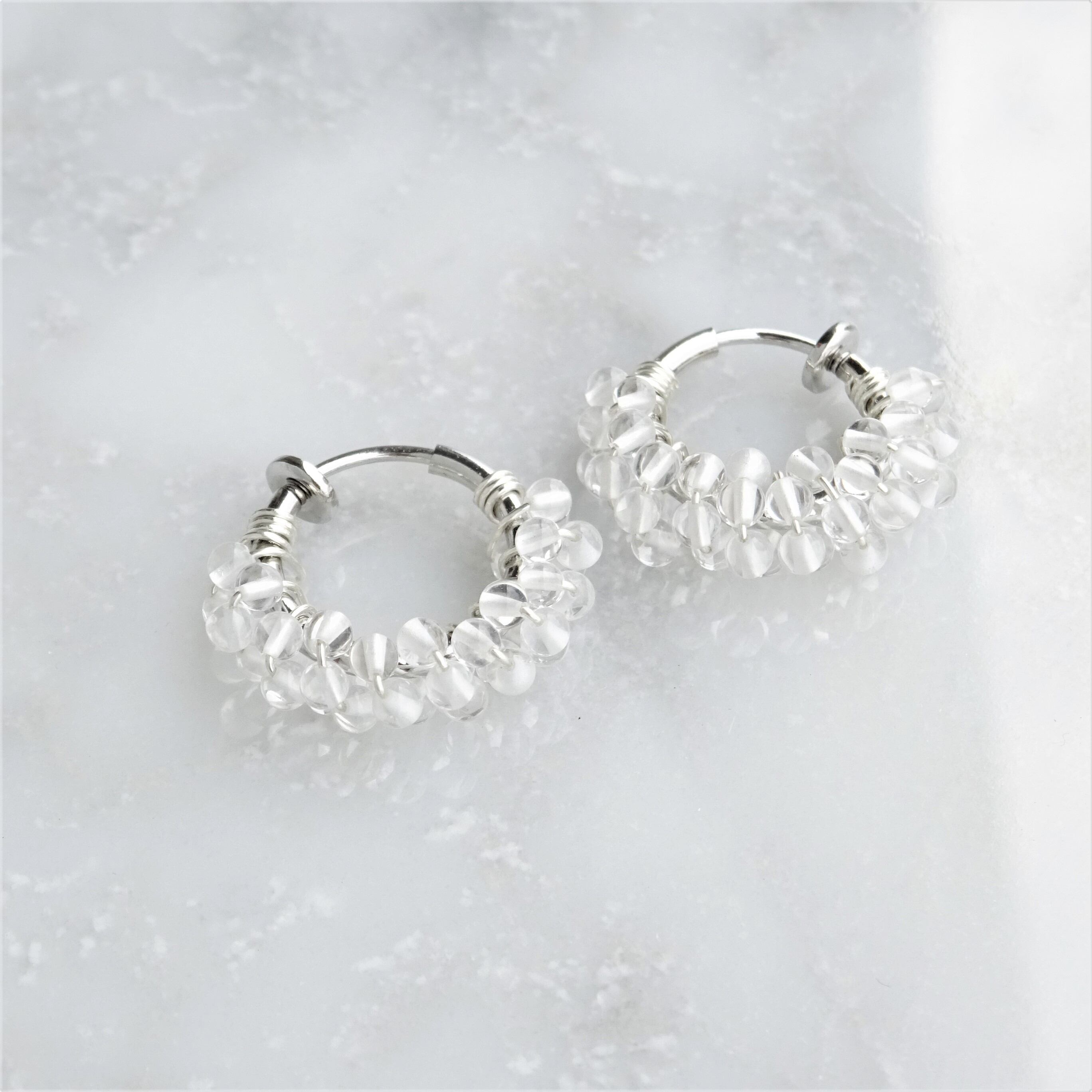 冬の澄んだ空気のような天然クリスタルをたっぷり絡めたシルバーピアス