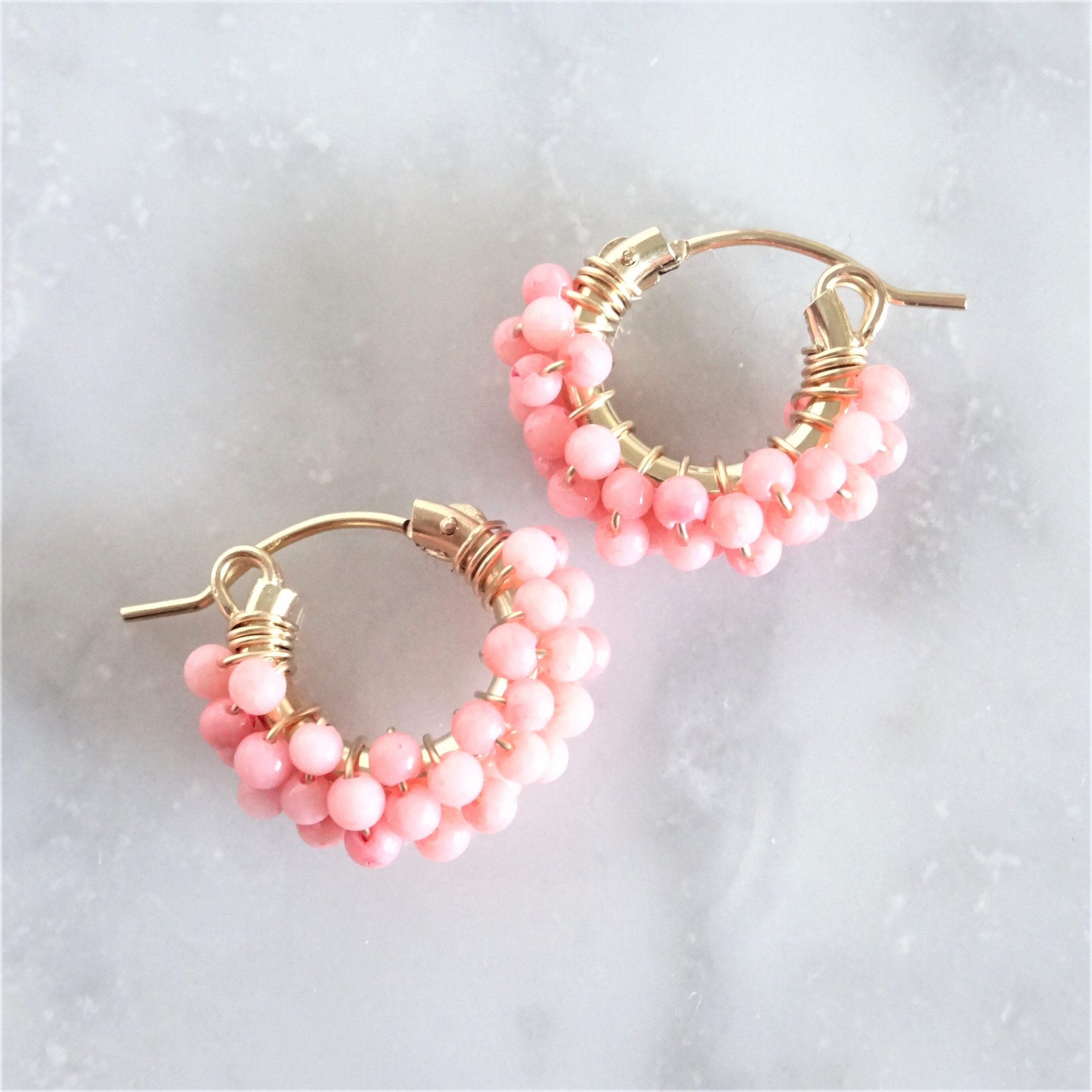 送料無料 14kgf*Pink Coral pavé pierced earring / earring